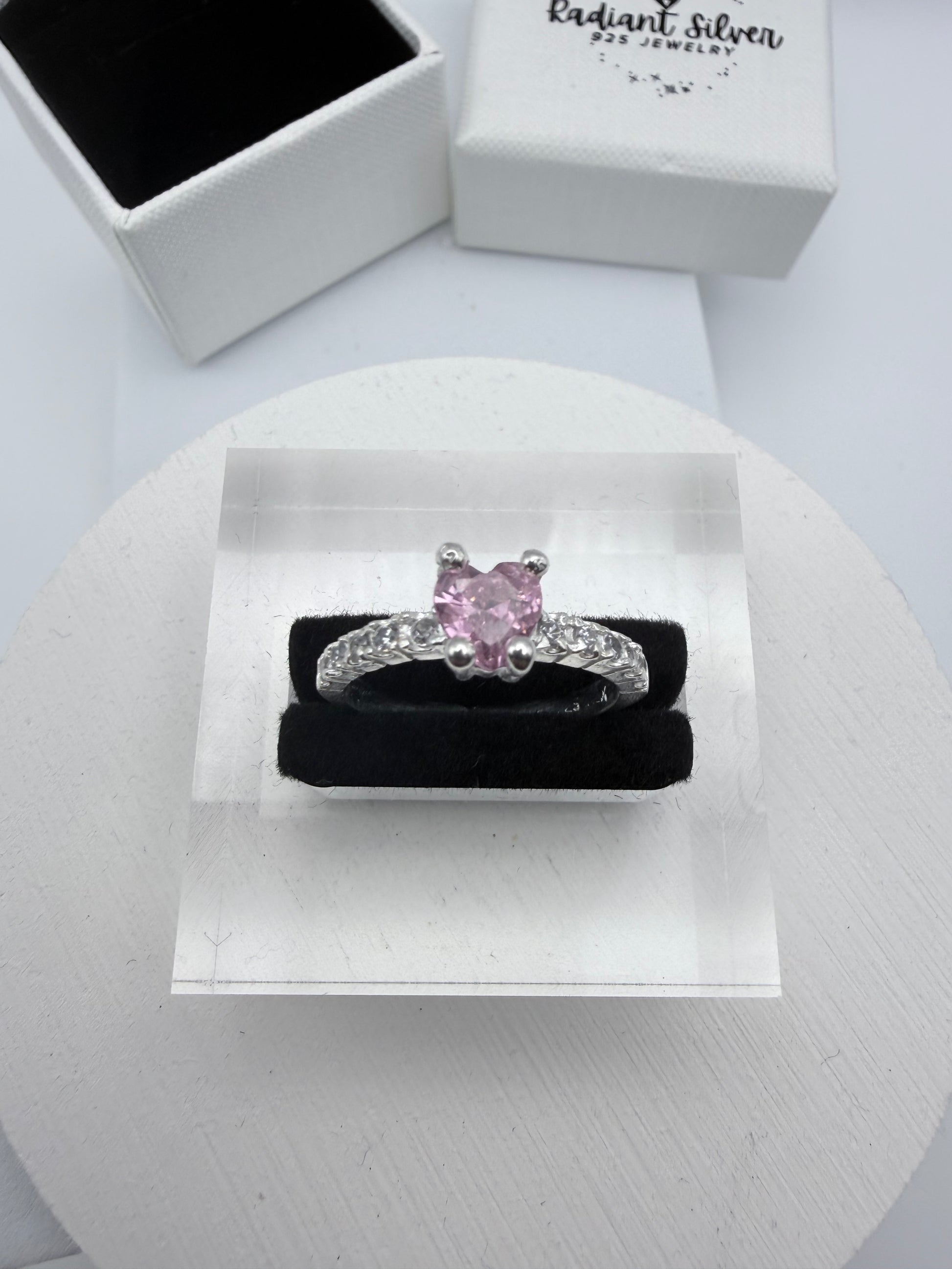 Pink Heart with cubic Zirconia on Sides Ring
